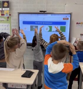 Het spel zonder devices is vanaf groep 3 in te zetten om bijvoorbeeld een thema van 4xWijzer (wereldoriëntatie) af te sluiten. Wij speelden een quiz om de woordenschat rondom het thema ‘Restaurant’ extra te oefenen. Vooraf upload je plaatjes en de bijbehorende vragen, zoals ‘Waar zie je een avocado?’ of ‘Waar zie je een voorbeeld van een voorgerecht?’. Je kunt zelf kiezen hoeveel vragen je aanbiedt, welke bewegingen je kunt maken en hoeveel nadenktijd je krijgt, dus leerlingen blijven betrokken!